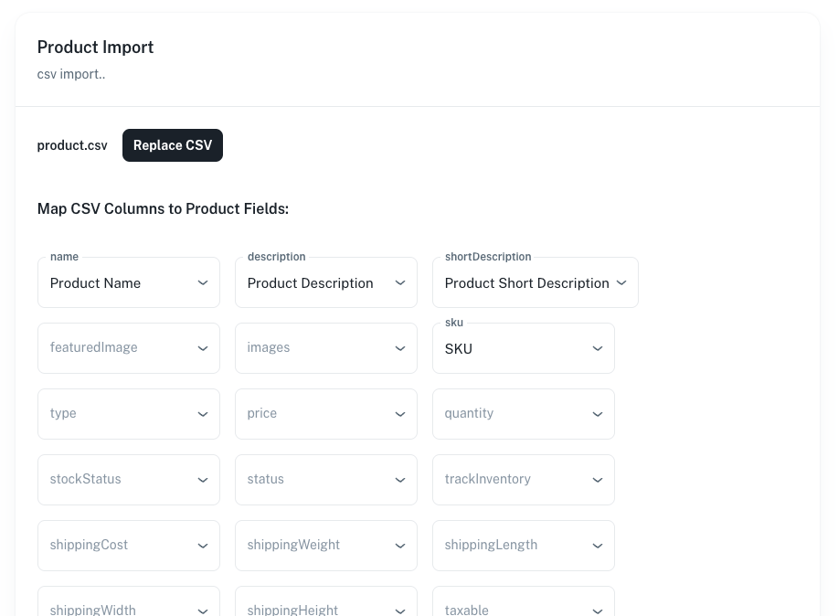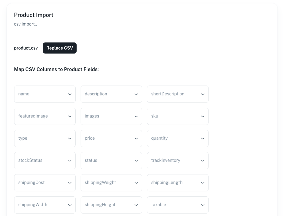 Once you have uploaded the CSV you can then select the columns that match the product fields