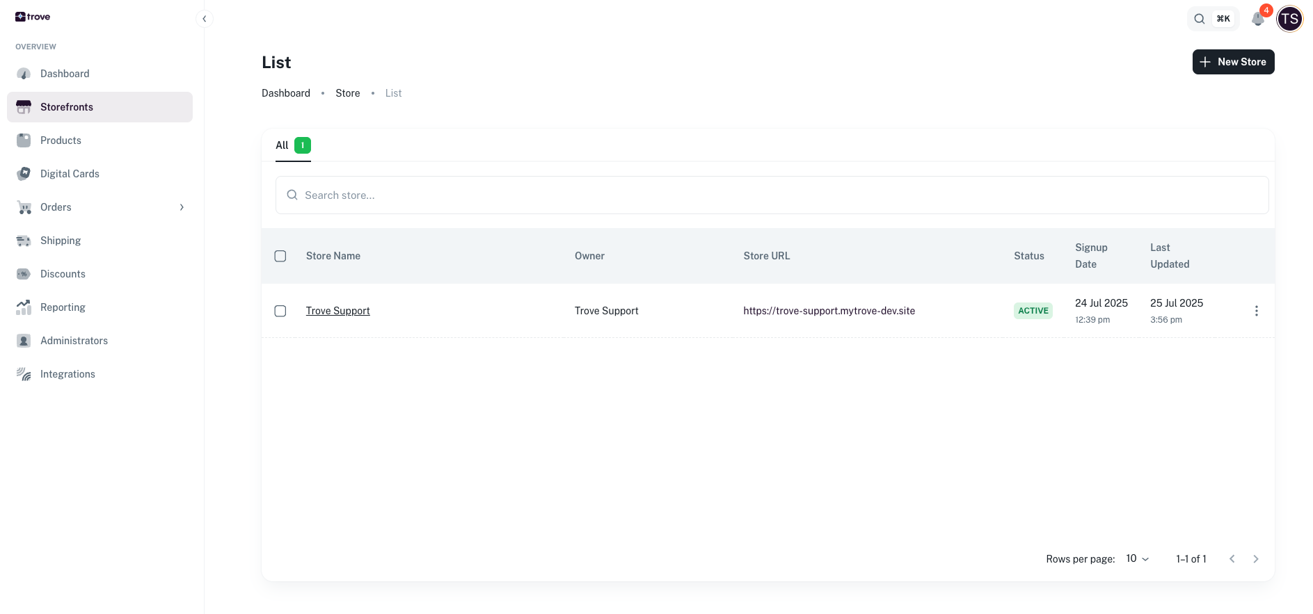 For every storefront you will be issued a Trove based URL. To get this URL you will need to go to the storefront listing page by clicking on the "storefronts" menu item From here the URL can be found under Store URL This is your Trove storefront URL ...