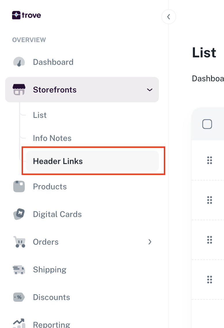 To update your header links you will need to go to your menu item "Storefronts" then "Header Links" Here you will see the list of your links To edit a selected link you will need to click on the 3 dots then delete Once you have confirmed the deletion ...