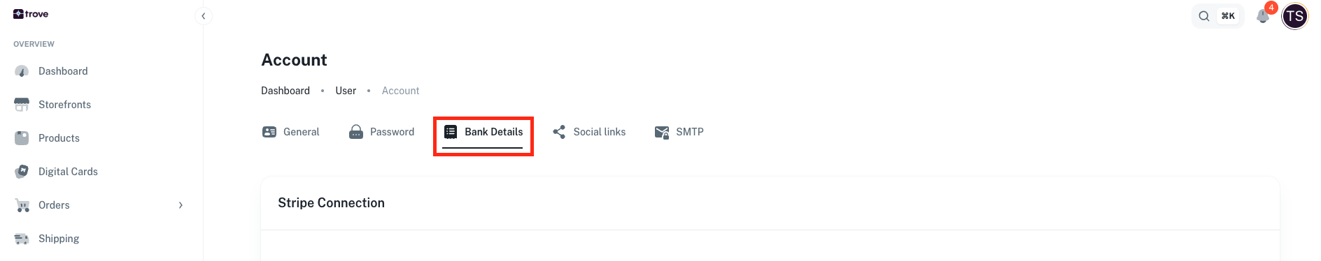 To receive payments through Trove, you’ll need to connect your account to our payment provider, Stripe, using their secure onboarding flow. This only takes a few minutes. Before getting started, have a look at our guide to help get all the details ...
